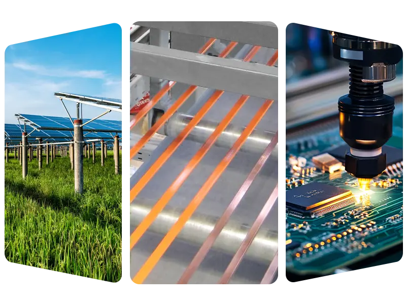 • Fotonaponsko polje: masovna proizvodnja fotonaponskih vrpci za zavarivanje i sabirnica koje pomažu komponentama da učinkovito provode električnu energiju.
